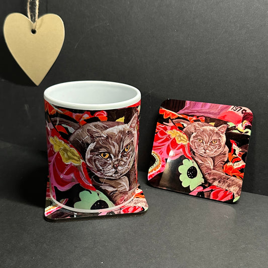 Mug & Coaster Cat on Throw